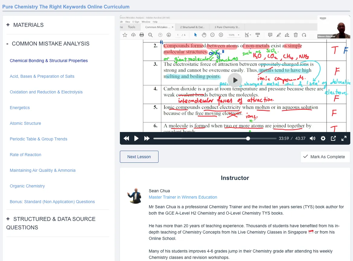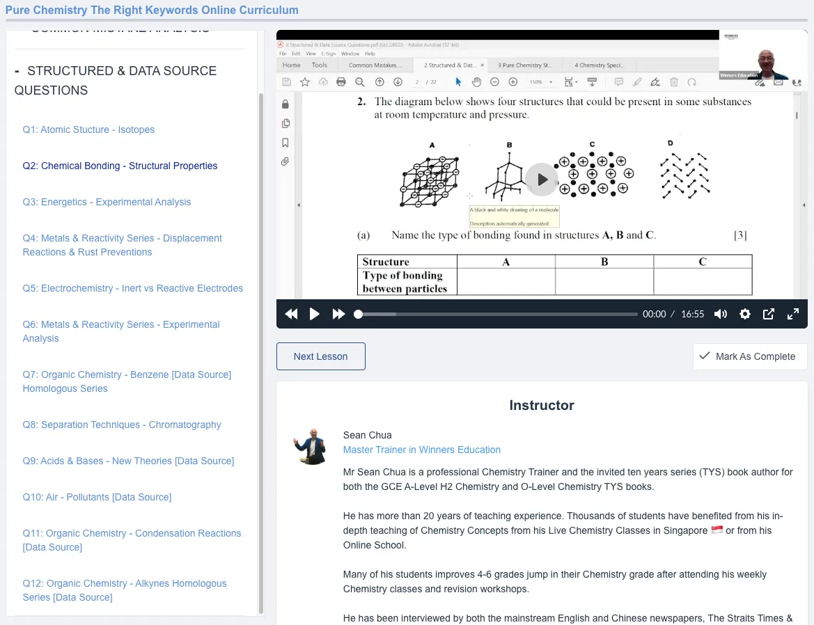 Taught by Mr Sean Chua, invited 10 Years Series Book Author for O & A Level Chemistry